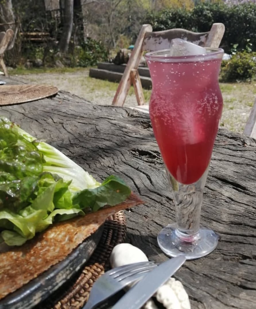 宇陀の厳選された農地で、農薬や化学肥料を使用せずに育てられた新鮮な生姜とハイビスカスローゼル、厳選された有機レモンを使用した贅沢なシロップです。生姜のピリッとした辛みとレモンの爽やかな酸味とスパイス、ローゼルのきれいな赤色が絶妙に混ざり合い、炭酸やお湯で割っていただくとピンク色のドリンクになります。